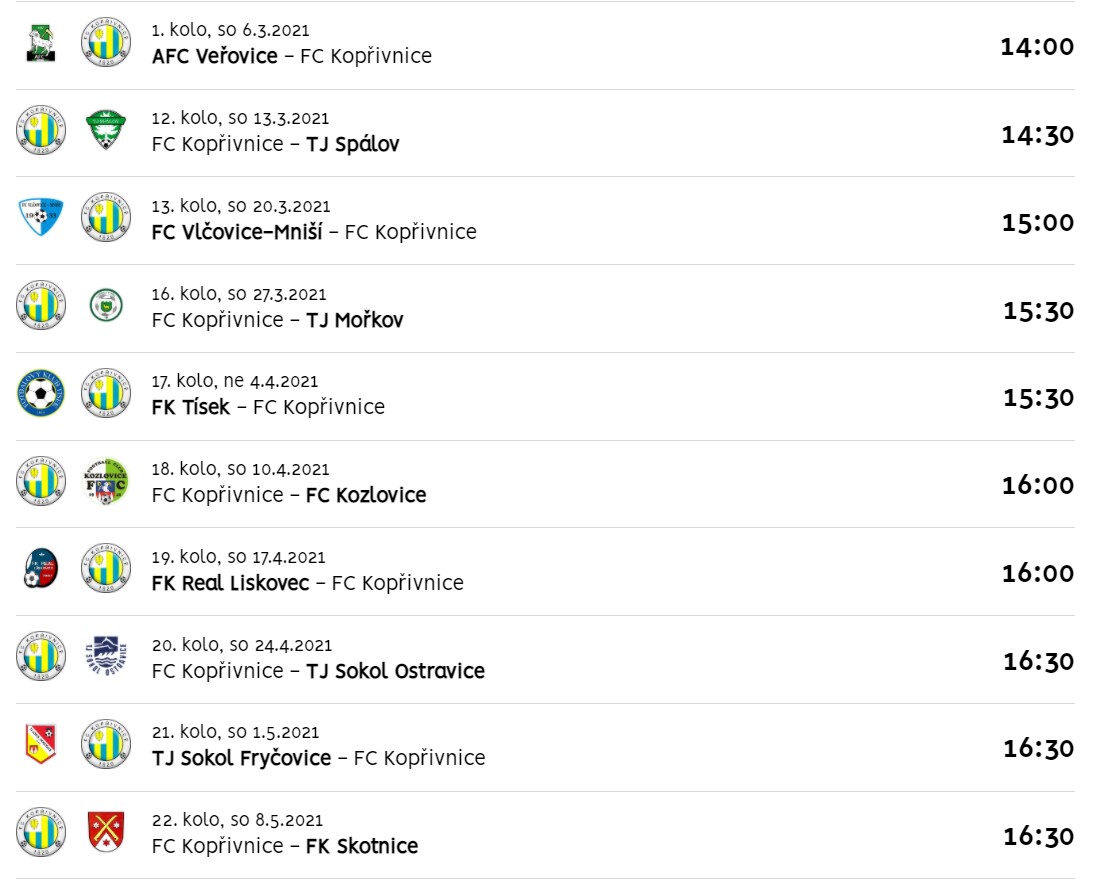 Termínová listina mužů CANIS I.B třídy sk. D pro jarní část sezóny 2020/21.