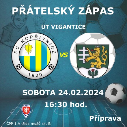 V sobotu 24.2.2024 nás čeká na UT Vigantice další přípravný zápas. Od 16:30 hod se utkáme s týmem FC Dolní Bečva.