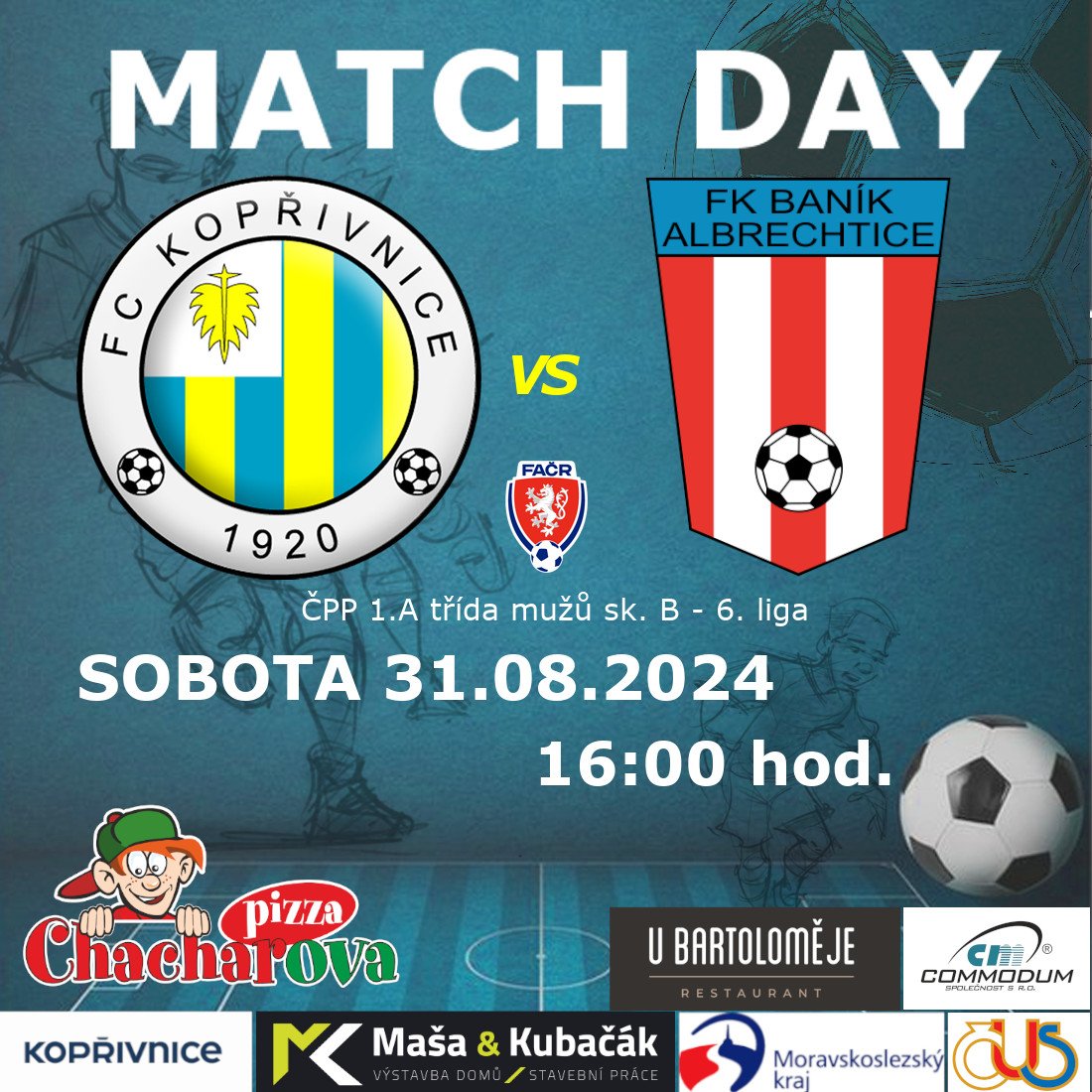 V sobotu nás čeká tým Baník Albrechtice 💛💙 📅 Sobota 31.8.2024 ⚽ ČPP 1.A třída mužů sk. B - 6.liga 🕟 Od 16:00 hod. 🥅 Baník Albrechtice. 🍺 Otevřen nový bufet v tribuně! Grilované klobásky, na čepu Radegast 10°, Birell Pomelo & Grep i Kofola.