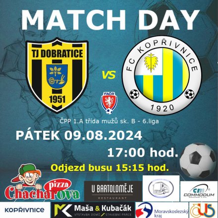 První venkovní zápas nové sezóny je tady. Hrajeme mimořádně v pátek! Bus i pro fanoušky odjíždí v 15:15 hod od fotbalového stadionu.